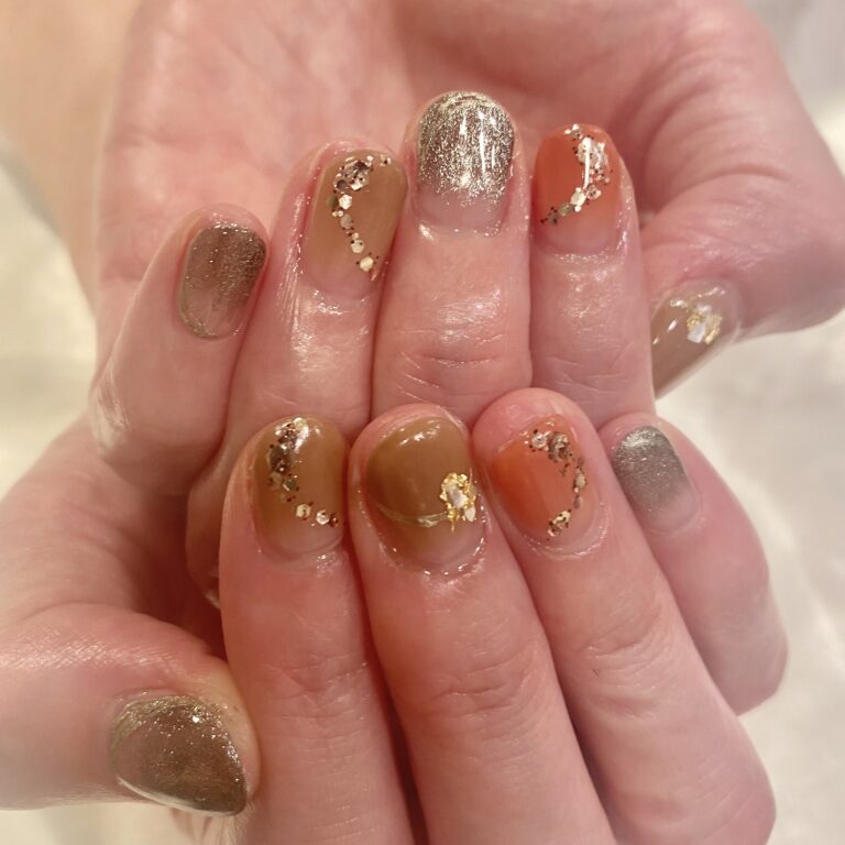 秋色で落ち着いたカラーのネイルです(^ ^)